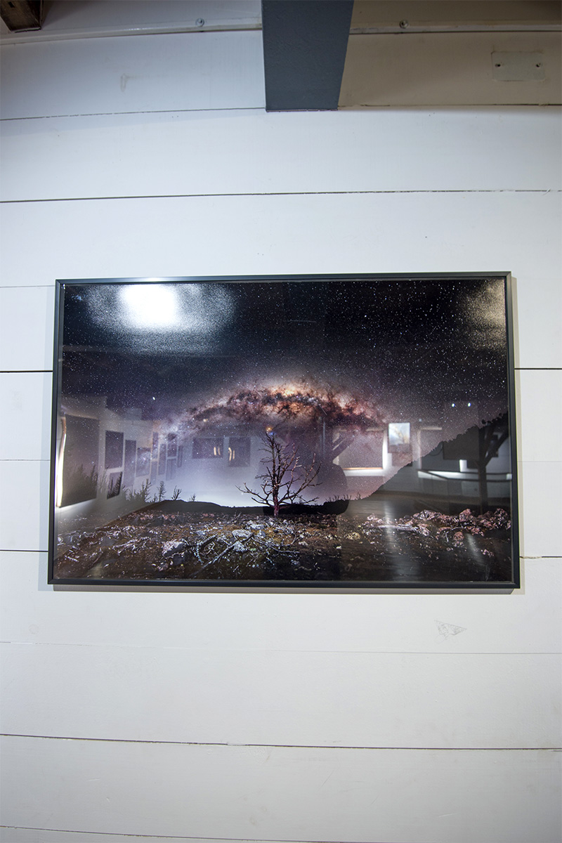 Fotografia con técnica de astrofotografía con imagen de árbol desolado tocando Antares producto de la erupción del Volcán Calbuco el 2015, dejando consigo vestigios y una cicatriz muy dificil de ocultar.